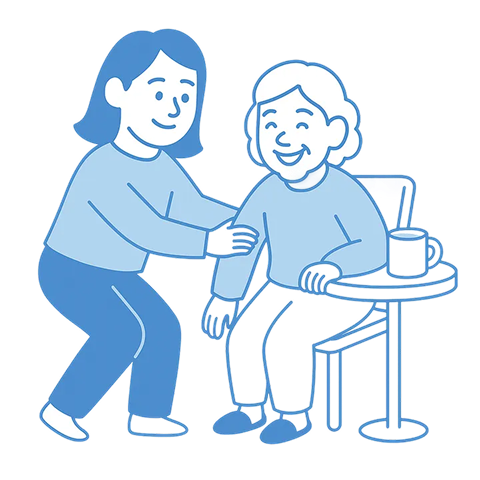Comfort-focused support and companionship, plus help with daily needs to ease the load for families.